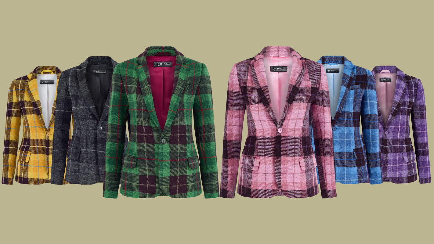 "Love this rainbow of Harris Tweed blazers which are incredibly well-made and can be dressed up or down."